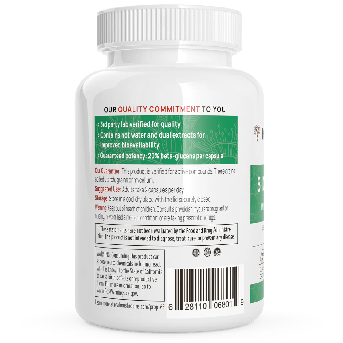 - A blend of organic extracts of Reishi, Shiitake, Maitake, Turkey Tail mushrooms and Chaga